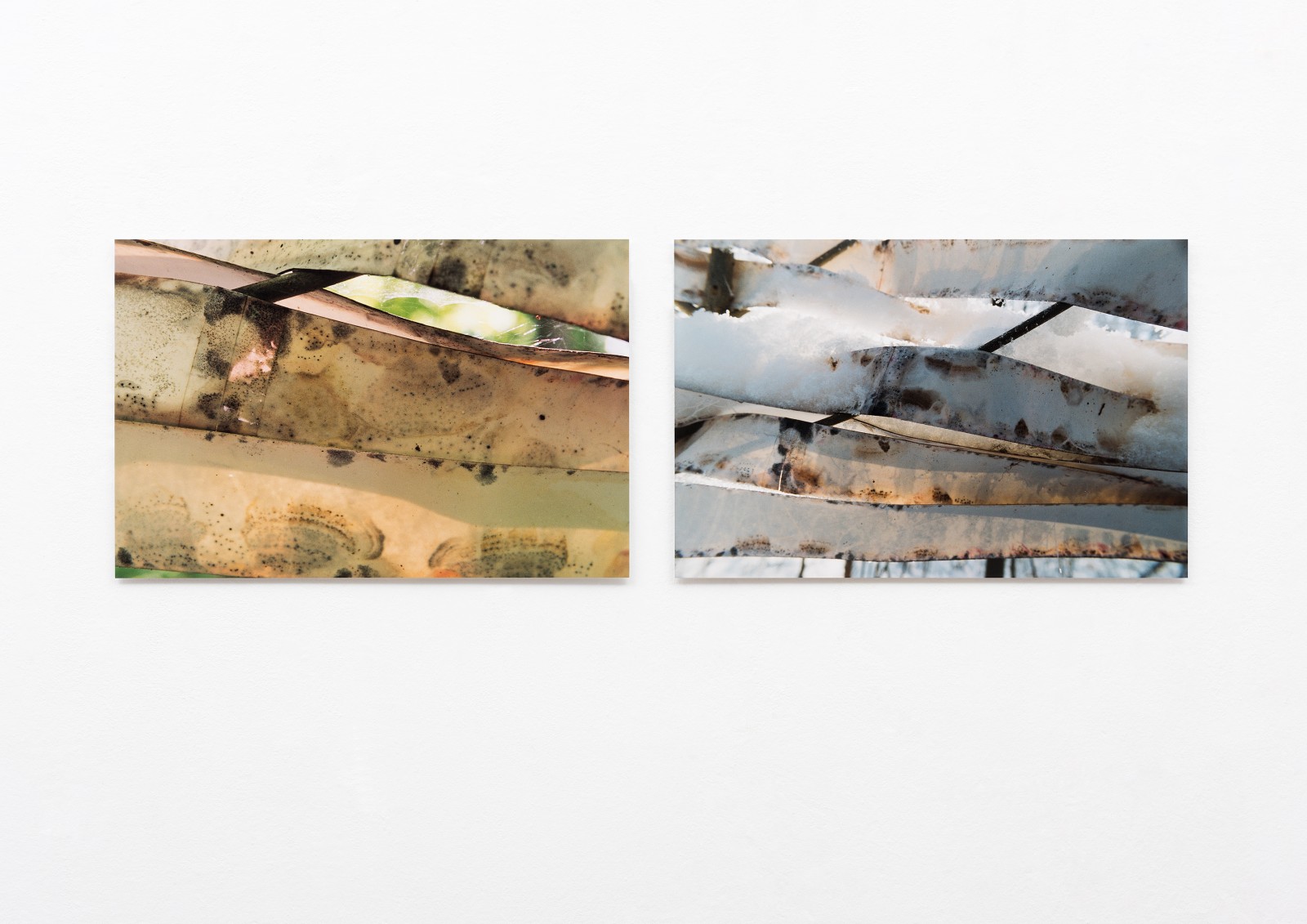 Wetter und Klima hinterlassen Spuren auf der chemischen Substanz der Fotostreifen. Ich denke an die ursprüngliche Bedeutung des Wortes Fotografie: photós, „Licht“ und graphein „schreiben, zeichnen“: „mit Licht zeichnen“.