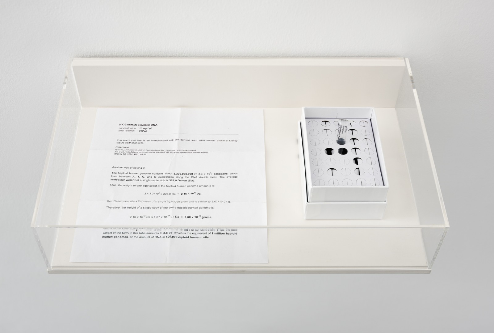 After the talk I give at Boğaziçi University, I receive a gift: a little tube containing a transparent liquid - human DNA, consisting of 3,300,000,000 base pairs of A, T, C and G. I turn the object into a part of the work
