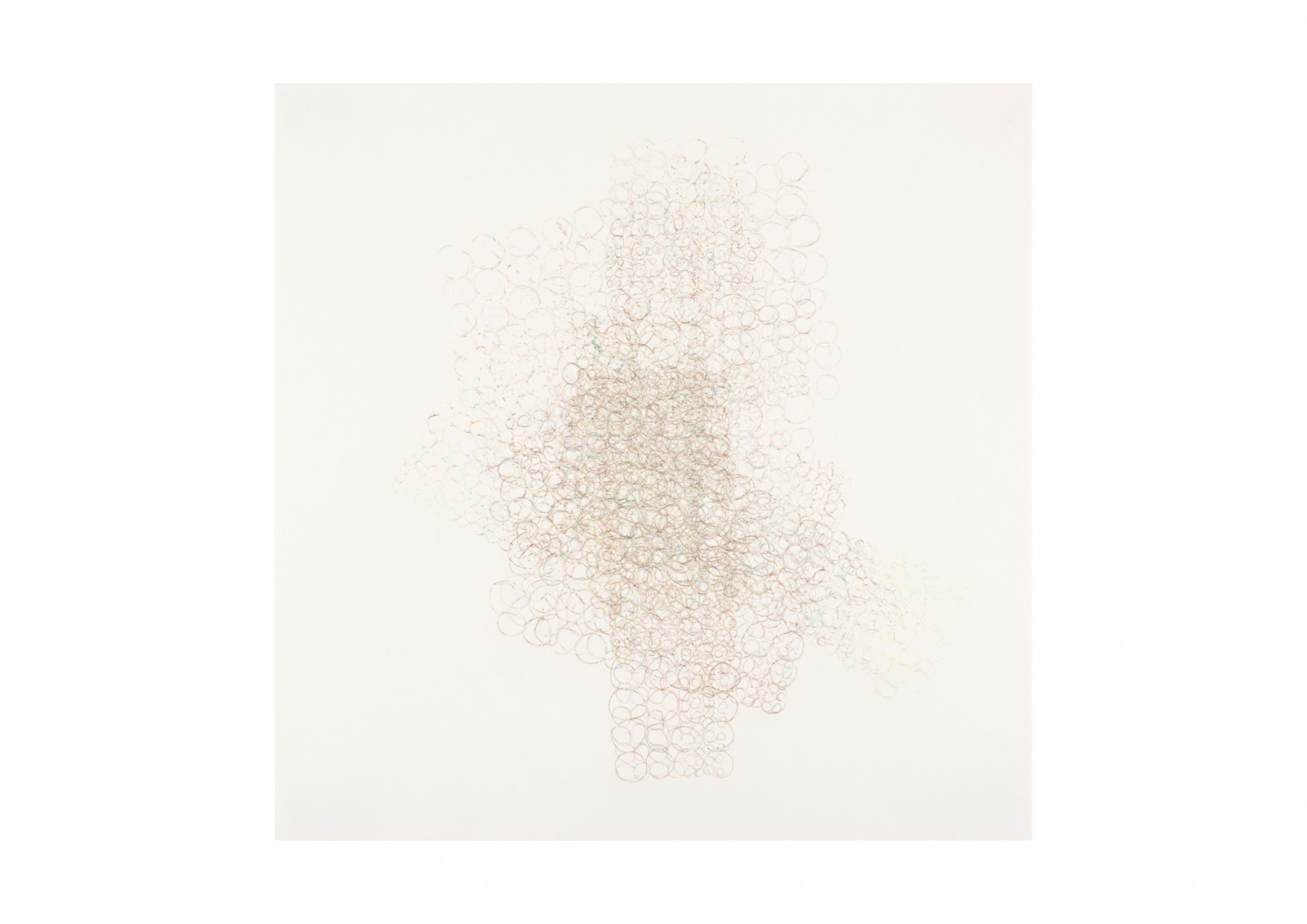 I draw the perforation process of Proxy 10: using a hard, sharp object, I draw four large circles of different sizes in horizontal and vertical rows on a blank sheet of paper, which happens to be lying on one of the drawings from Proxy 7. I discover an indirect drawing on the reverse, which I now re-define as the front.